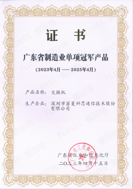 • Guangdong Province manufacturing industry single champion product certificate